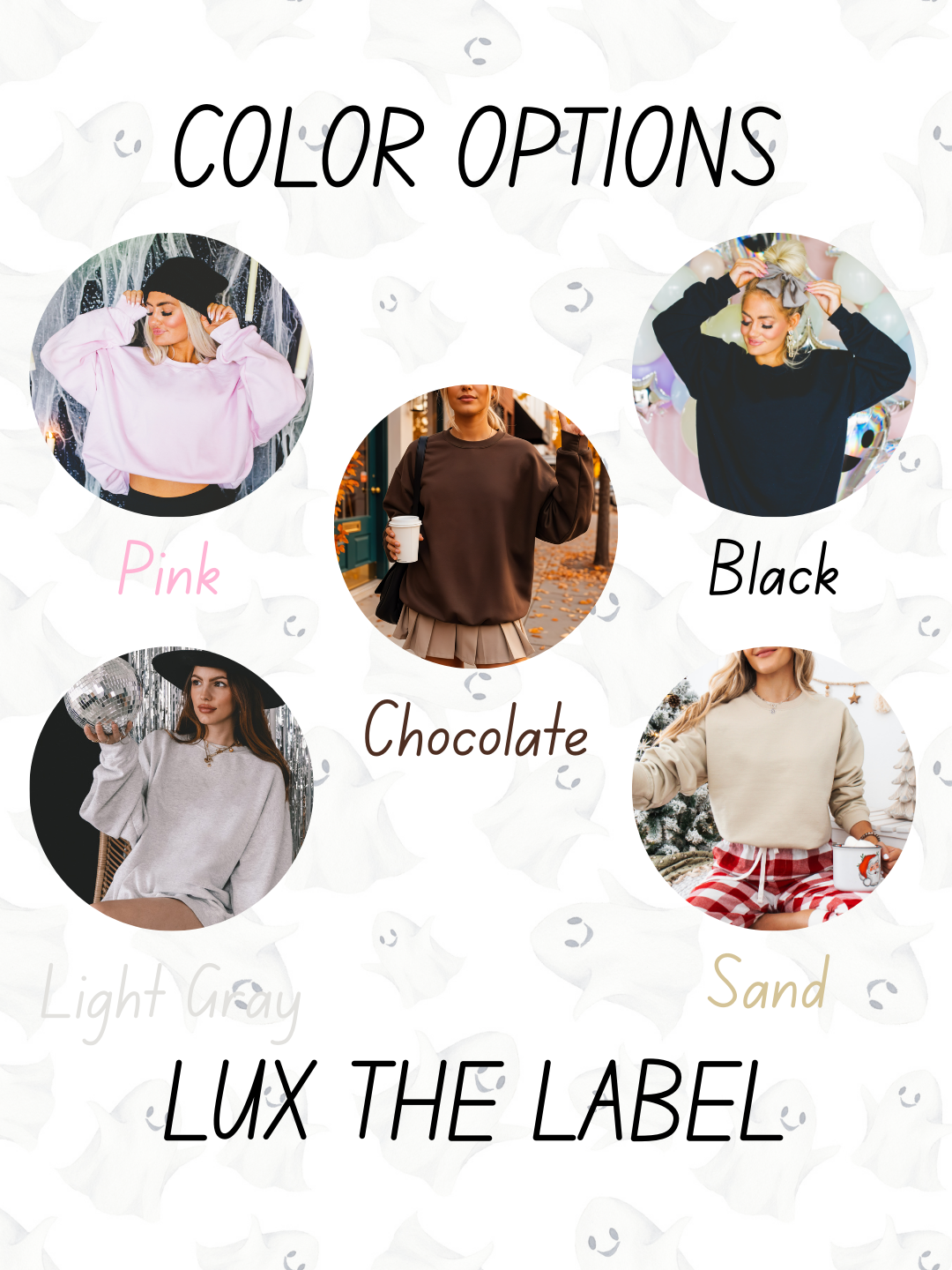 HALLOWEEN CREWNECK! This is a Gildan, unisex crewneck, but it is true to size. If you want an oversized fit, size up one size. Each crewneck is hand pressed using high quality transfers which will ensure a long lasting design.